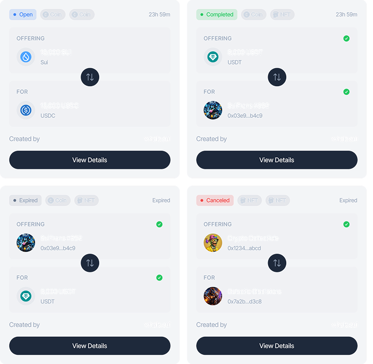 We designed and built the full marketplace with secure escrow and multi-asset swap support. Users can trade any combination of assets in a single transaction, all settled automatically.