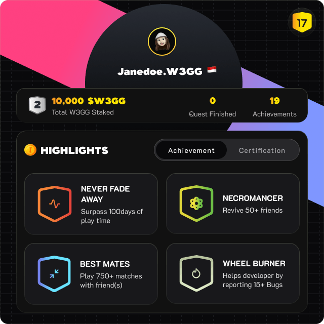 Pixel8Labs built a hybrid on-off-chain soul-bound NFT system for W3GG with 30,000+ profile tokens minted and linked to in-game achievements.
